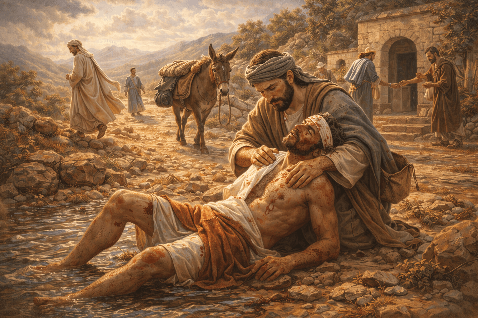 Любов до ближнього: покликання і благодать (Луки 10:25–37) Вступ. Дорогі брати і сестри, уявіть ситуацію: пізня година ночі,