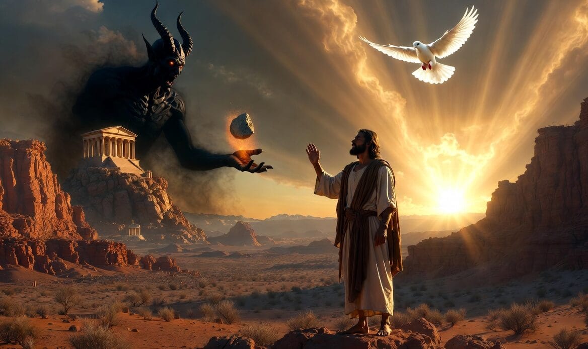 Після сорока днів посту Ісус зголоднів. І тоді диявол б’є найнижче й водночас найпідступніше: «Коли Ти Син Божий, скажи, щоб каміння це хлібом стало». Зверніть увагу: ворог не каже «зроби щось явно нечестиве». Хліб — це добре. Але отрута захована в словах: «коли Ти Син». Це удар по ідентичності та довірі. Ніби сатана шепоче: «Якщо Отець справді любить Тебе, чому Ти голодний? Візьми владу в свої руки. Використай дари Бога для себе. Постав потребу вище послуху».
