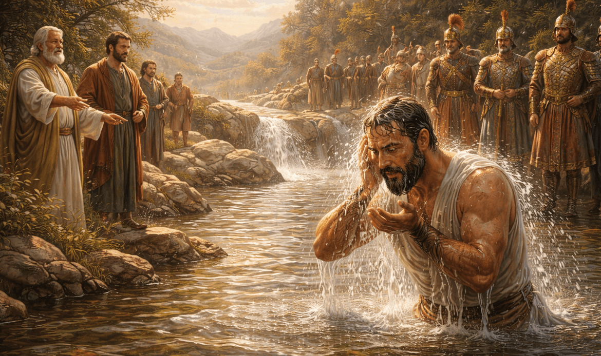 На щастя, слуги Неємана втрутилися і лагідно переконали його: «Батьку мій, коли б велику річ говорив тобі той пророк, чи ж ти не зробив би? А що ж, коли він сказав тобі тільки: “Умийся – і будеш чистий”?» . Ці прості слова розбили пиху воєначальника. Він послухався – і Бог вчинив чудо. Ось духовний принцип: смирення і послух Божому слову відкривають двері Божого благословення. «Бог гордим противиться, а смиренним дає благодать» (Як 4:6). Неєман мусив визнати, що не його заслуги, не багаті дари, привезені для пророка, а лише милість Господня могли його очистити. Йорданська вода сама по собі не мала сили – силу мав Бог, який випробовував віру прокаженого через цей простий акт.